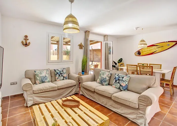 Set approximately a 10-minute ride from Isla de Lobos Museum, the spacious 2-bedroom Bbq House Vila Apartment comprises a patio and a balcony overlooking the garden. The apartment offers a terrace with views of the sea.